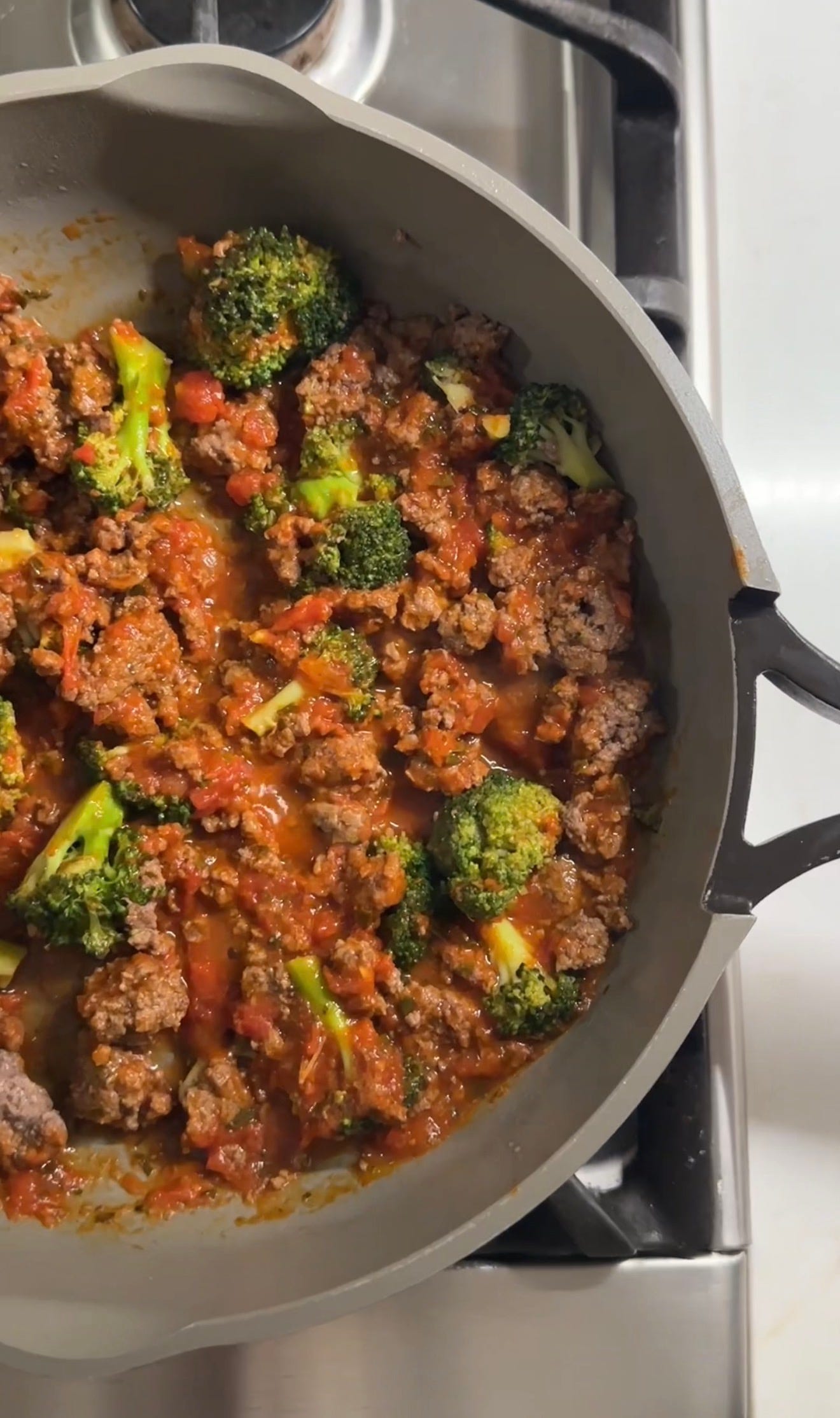 Add broccoli back to the pan. Pour in sauce and simmer on low for 3–5 minutes until thickened.